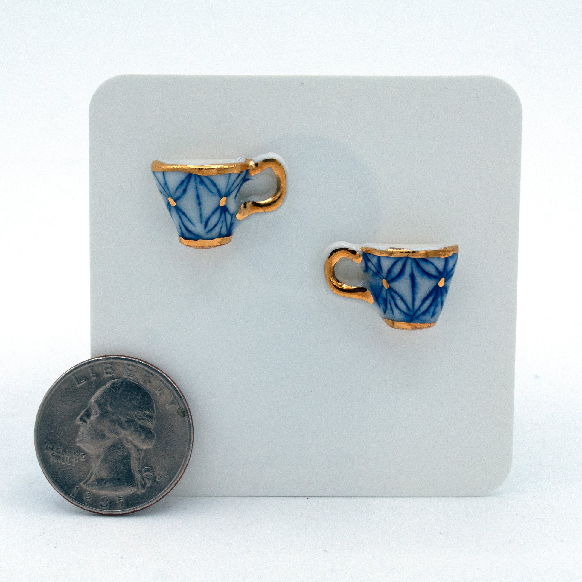 Made from a mold of a Barbie Teacup, these adorable miniatures are the perfect accessory that adds a touch of sweetness to any outfit. These stud earrings have a hypo-allergenic gold-filled post and are adorned with blue inlay and gold luster.